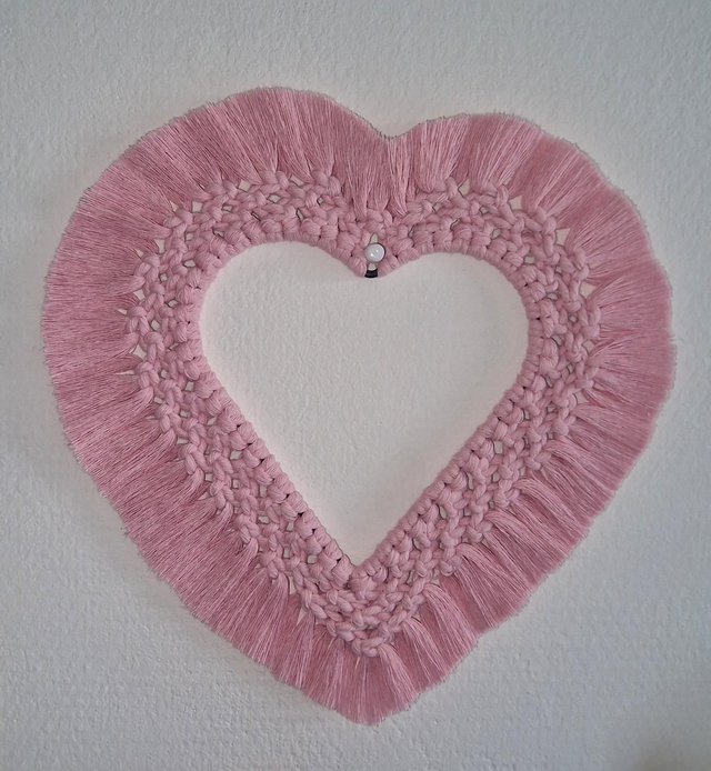 Ce coeur en métal recouvert d'un joli fil rose pâle torsadé en 3 mm sera idéale pour décorer une chambre d'enfant.