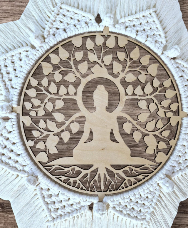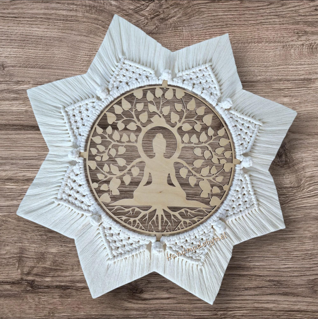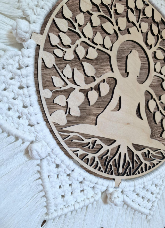 Fabrication de l'arbre de vie en bois de bouleau 4mm tissage en fils de coton peigné en 3mm