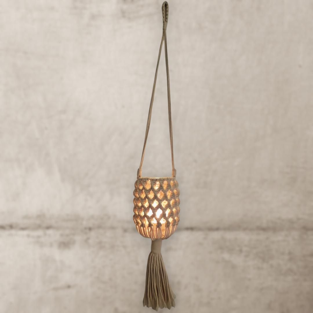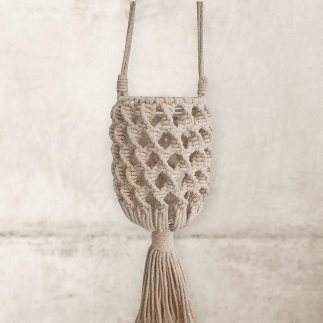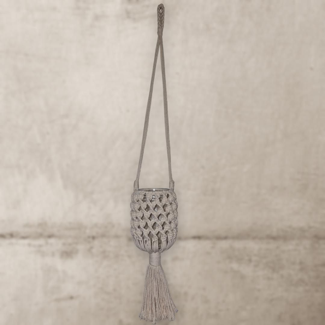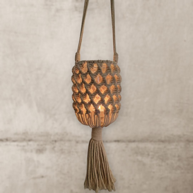 Idéal pour ajouter une touche de chaleur et d'ambiance à votre espace de vie, ce petit photophore en macramé est parfait pour créer un petit coin cosy où vous pourrez vous détendre et profiter d'une atmosphère chaleureuse.