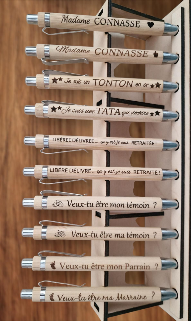 Découvrez notre collection d’articles en bois gravés avec soin, parfaits pour offrir ou pour se faire plaisir !