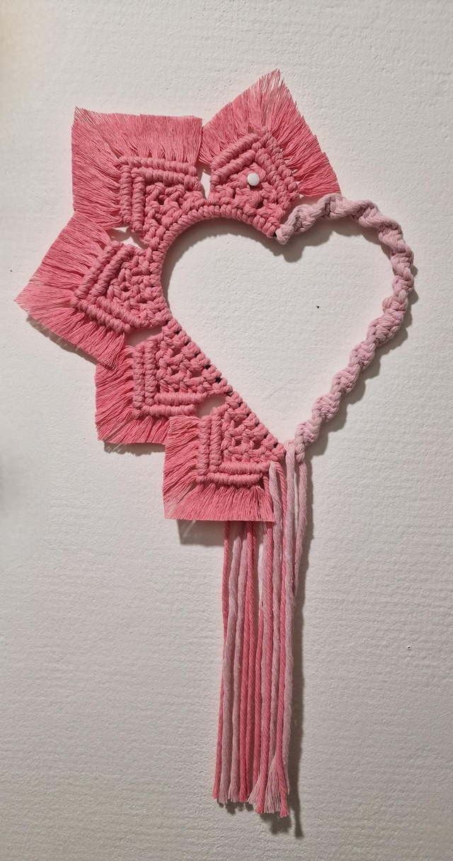 Joli support cœur en métal recouvert de deux fils rose qui pourrait très bien s'accorder dans une chambre de princesse. fils de 3 mm torsadé et peignés utilisés pour cette création romantique et chaleureuse.