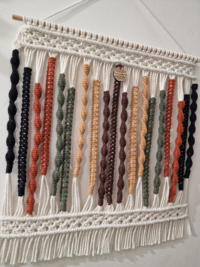 Suspension murale multicolore fils coton en 3mm dimension 43x43 cm