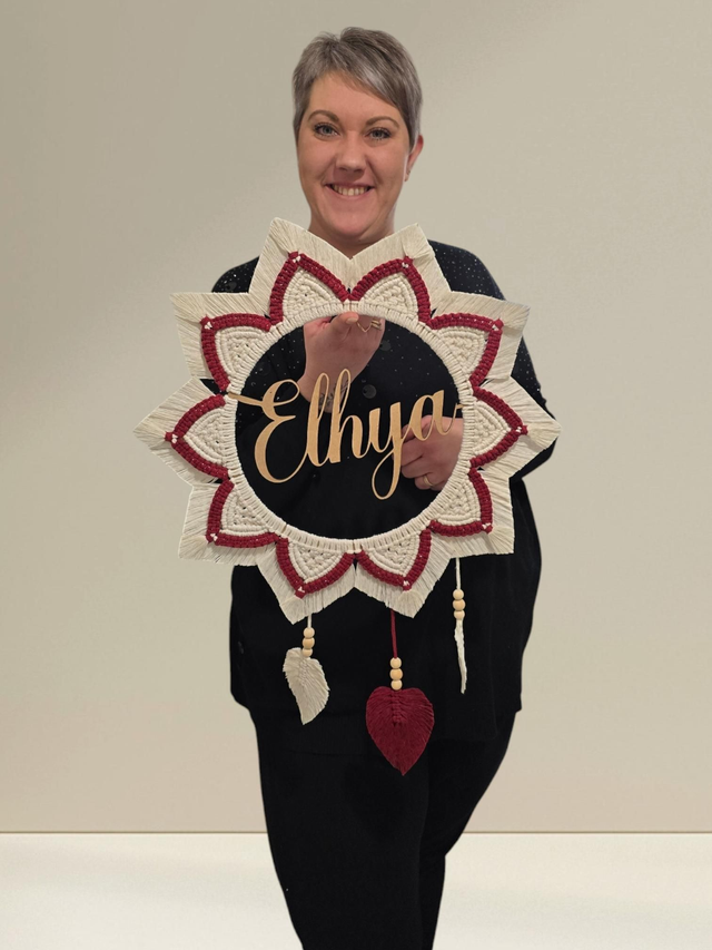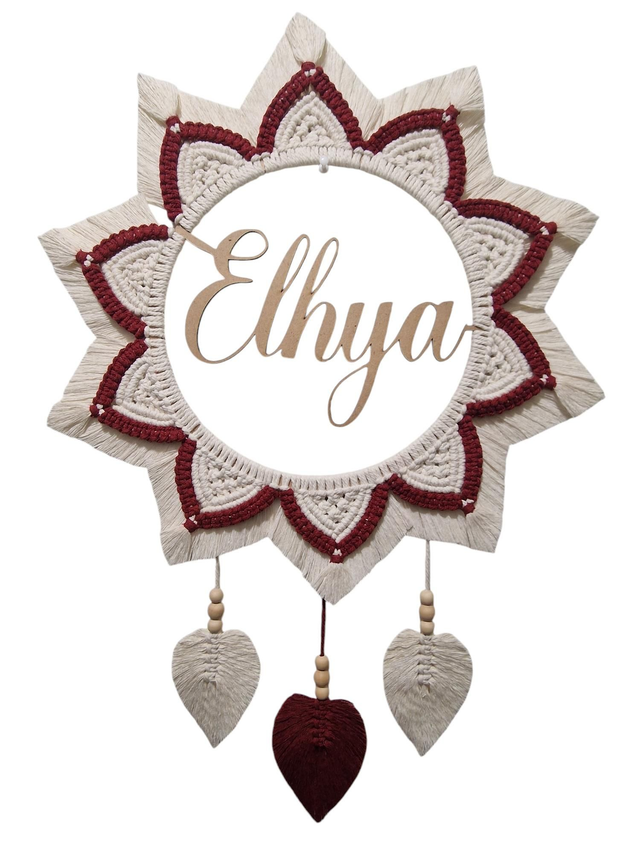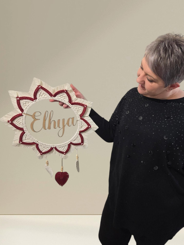 Cercle en bois prenom personnalisée en 25 cm. Fil macrame en 3mm.
