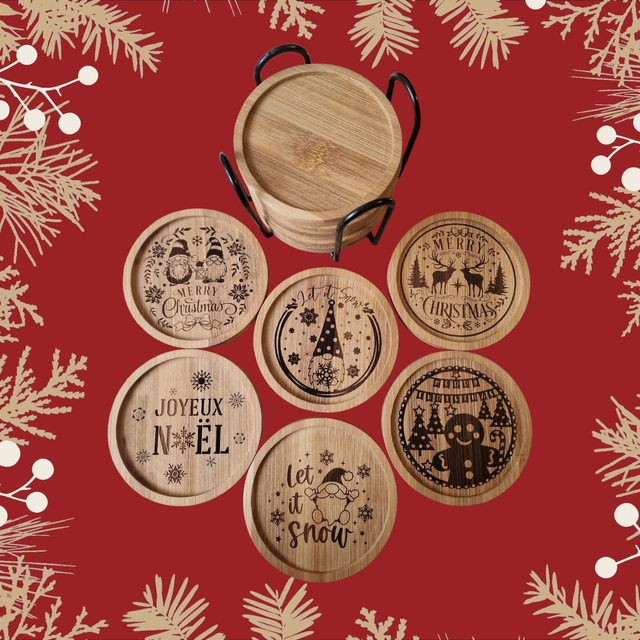 🎄✨ Ensemble de 6 dessous de verre gravés – Thème de Noël ✨🎄